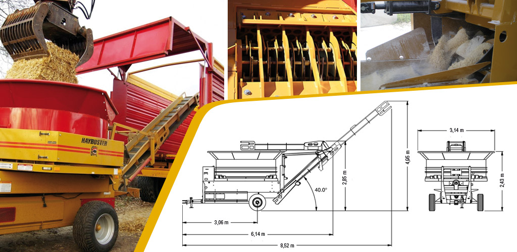 Haybuster H-1000 – це середньорозмірний подрібнювач соломи і сіна з лінійки Big Bite, відомий своєю ефективністю та надійністю. Модель H-1000 є однією з найбільш доступних за ціною у своєму класі, забезпечуючи економічне та продуктивне подрібнення кормів. Цей подрібнювач розроблений для фермерських господарств із поголів’ям від кількох сотень до кількох тисяч голів худоби, яким потрібне швидке та точне подрібнення соломи й сіна. Агрегат приводиться в дію від валу відбору потужності трактора та перетворює великі тюки (рулонні чи квадратні) на дрібно порізану масу з точністю нарізки майже 99%, придатну для згодовування або використання як підстилки.