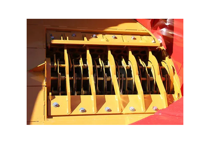 - Змінні решітки-сита. За допомогою змінних решіт (ситових екранувань) оператор може задавати бажану фракцію подрібнення. Доступний широкий вибір отворів – від приблизно 10 мм для тонкого помелу до 100–120 мм для грубшого різання. Це означає, що одну й ту ж машину можна налаштувати як для отримання дрібної різки соломи у корм, так і для більш довгих шматків на підстилку. Заміна сит здійснюється відносно швидко через зручний доступ, що спрощує переналаштування під різні завдання.